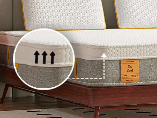 When we buy a traditional inner spring mattress, it often bounces back heavily. Our Spring Mattress is made of pocket springs or encased coils. Individual springs are wrapped in fabric pockets to ensure motion isolation. This construction effectively reduces motion transfer across the mattress, making it an excellent choice for couples. Sleep disturbances caused by heavy bounces and movement are minimized, allowing for uninterrupted rest.