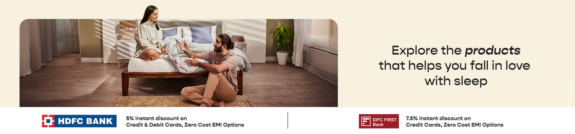 Get ₹500 off when you add any pillow or bedding accessory to your mattress order!