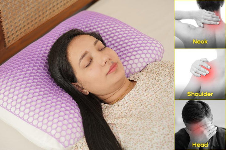 The top part of the pillow features a stretchable TPE layer with a hexagonal structure that adapts to pressure, providing personalized support and pressure relief.