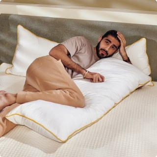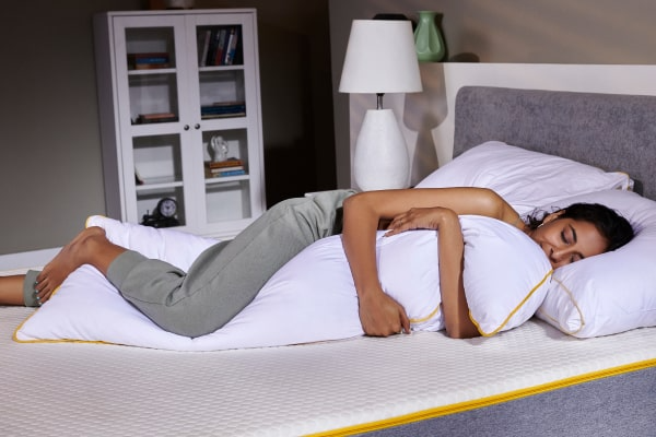 With our Cuddle pregnancy body pillow online, you simply do not have to worry about anything. Its crafted with hypoallergenic materials (cover and fill), so allergens stay away. Plus, it does well in the breathability department, too. The fill and the cover combine to offer ample insulation while wicking moisture away, keeping you comfortable all through the night. The cherry on top? Cleaning this durable, non-pilling, non-wrinkling pillow is as easy as 1-2-3. You can simply take off the cover and add it to your laundry load for the day, giving it a quick machine wash whenever needed. Oh , and did we mention that our body pillow for pregnancy can reduce anxiety? Just give it a hug as you sleep to feel all your worries melt away. Pair it up with our mattresses for the ultimate sleep experience!