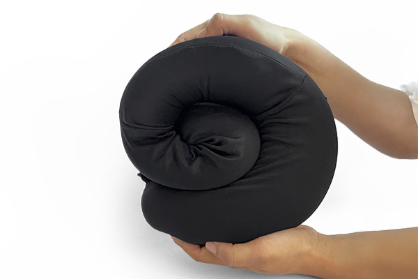 It comes with a snap button to hold the pillow in place while it comfortably wraps around your neck, preventing strain on long journeys