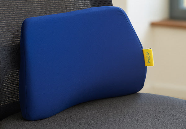 Ergonomic lumbar cushion with contoured support, breathable memory foam, and a compact design that fits wherever you sit.