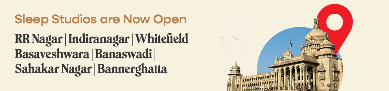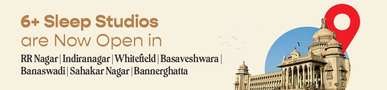 At the SleepyCat stores in Bangalore, you’ll find a variety of mattresses for different sleep needs. This includes Hybrid Latex for orthopedic support, Ultima Natural Latex for cooling comfort and the responsiveness of 100% organic latex, Ultima Memory Foam for pressure relief, the Cloud Mattress for hotel-like plushness, the Original Mattress for the perfect balance of support & comfort, and the Switch Dual Comfort Mattress with double-sided firmness. Each mattress tailored to suit different sleep styles, ensuring restful and restorative nights.