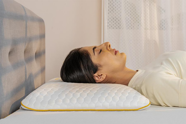 A slim or thin pillow is better for someone who generally sleeps on their back as it fills the space between the back of the head and the neck, reducing and preventing muscle tension. Also, it fills the hollow space between the neck, shoulder, and your mattress