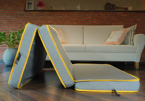Lightweight foldable mattress with high-resilience foam, smart portability features, and compact comfort.